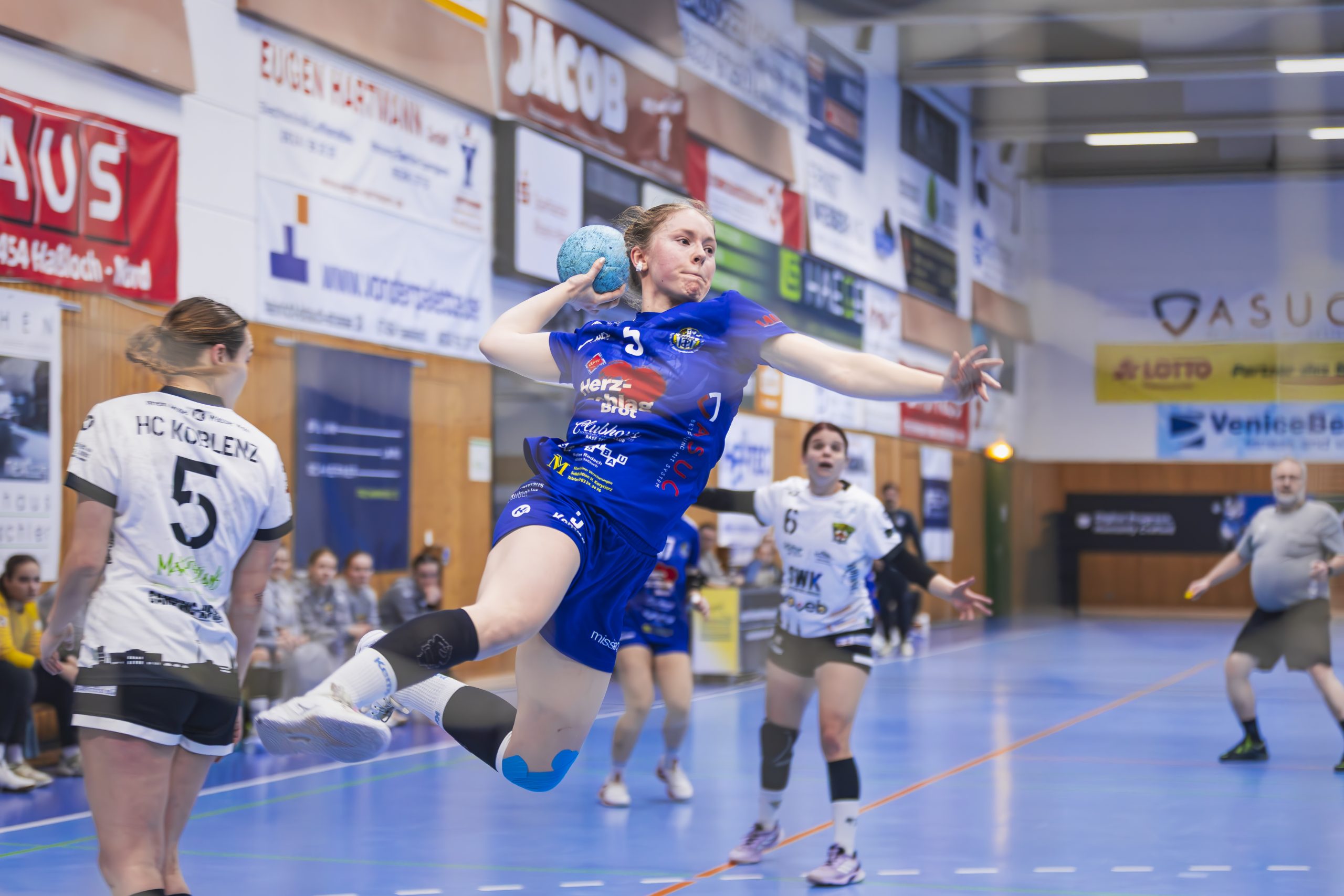 Nach dem Punktverlust gegen Bretzenheim hieß der nächste Gegner HC Koblenz, der gegen den Abstieg spielt. Die Favoritenrolle lag somit klar bei den Haßlocherinnen. Doch davon war zu Beginn noch wenig zu sehen, generell zeigten die Gäste das ganze Spiel über, dass sie zu unrecht im hinteren Tabellenfeld stehen. Nach dem 5:2 (8.) ließen sich die Rheinländerinnen nicht abschütteln und erspielten sich durch ihre geduldig gespielten Angriffe den Anschlusstreffer zum 7:6 (12.). Dann legten die Gastgeberinnen den Schalter um und erzielten einen 4:0-Lauf zum 11:6 (15.). Die Führung bauten sie weiter aus (14:7, 20.), ehe ein Bruch ins TSG-Spiel kam. Klare Chancen wurden nicht genutzt und ließen die Koblenzerinnen auf 14:11 (24.) verkürzen. Nach einer Auszeit fand man wieder zurück in die Spur und erhöhte die Führung bis zur Pause auf 17:11.